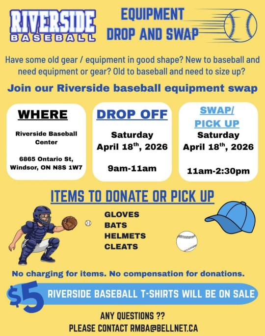 Join us at Riverside Baseball Centre for our annual equipment swap